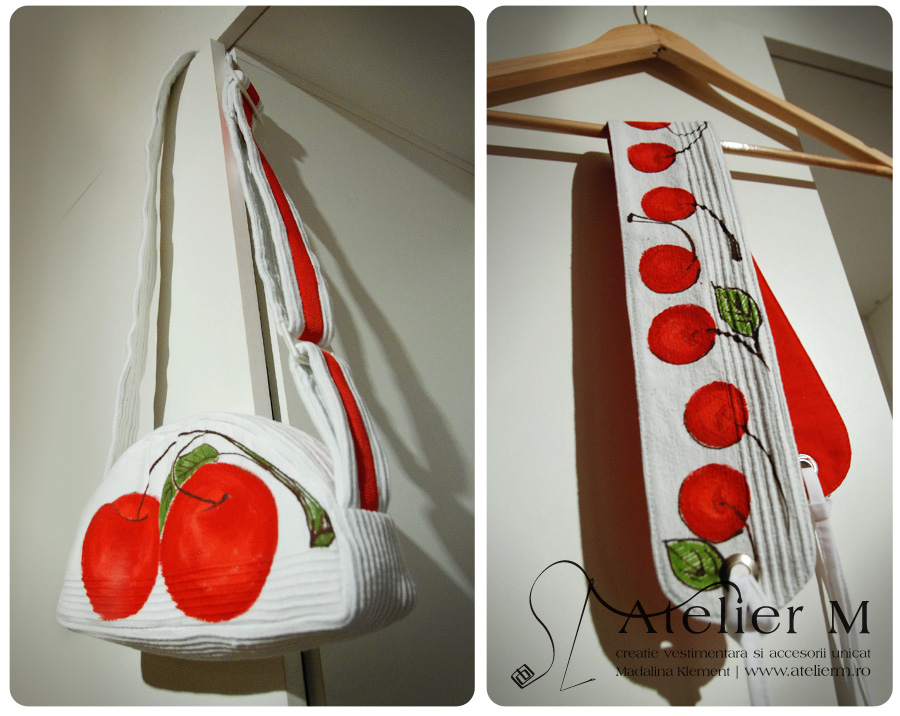 Tunica 120 lei, poseta mica cu bretea reglabila 95 lei, brau pictat 40 lei.