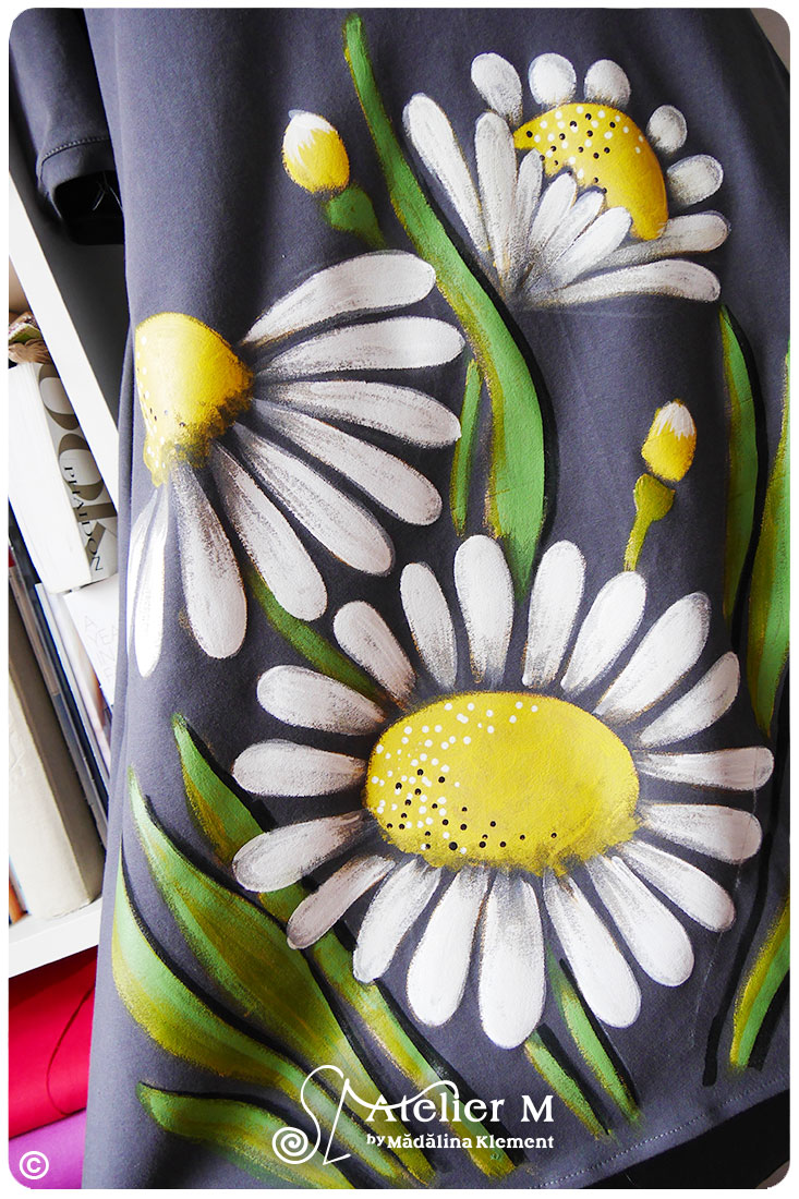 Rochia model AMON si variatiuni de culori si margarete pictate.
